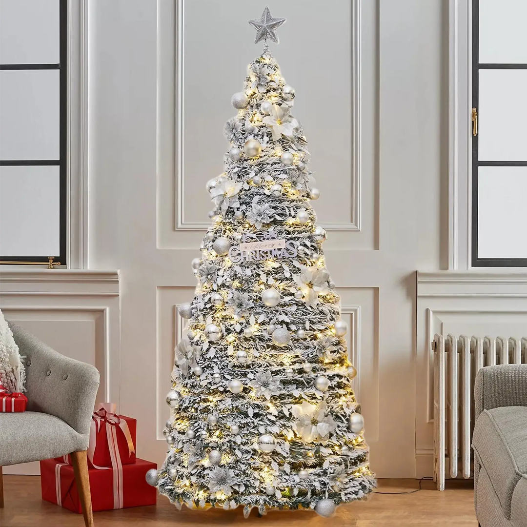 დასაკეცი ვინილის საახალწლო ნაძვის ხე მორთული/განათებით 150 სმ
